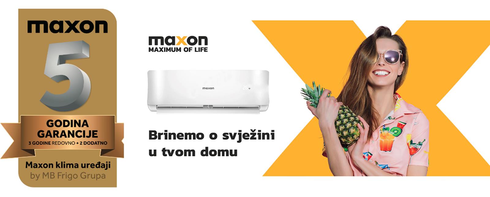 MB Frigo Grupa omogućila je dodatnu pogodnost za MAXON klima uređaje kućne serije – 5 godina garancije na cijeli uređaj. Navedena pogodnost vrijedi za sve Maxon klima uređaje kupljene od 14.04.2022. nadalje od serije 11i.